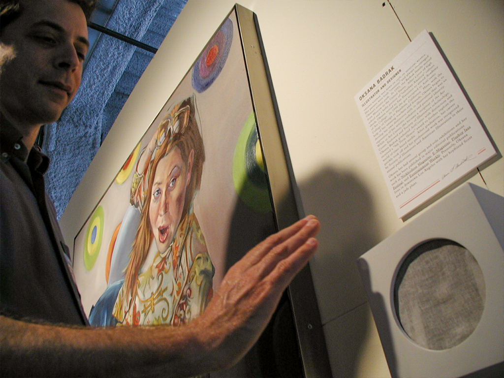 Introduce Yourself was an interactive exhibition combining traditional portraiture and soundscape, clebrating eighteen master artists from the Los Angeles area. Each portrait had a box next to it that had a motion sensor that, when triggered, the viewer would here the artist introduce his or herself. The show took place at The Grove which was and is a heavily trafficked outdoor shopping mall in West LA. I also made a detailed book that featured a famous piece of art from each artist, his or her portrait, and a small biography.
