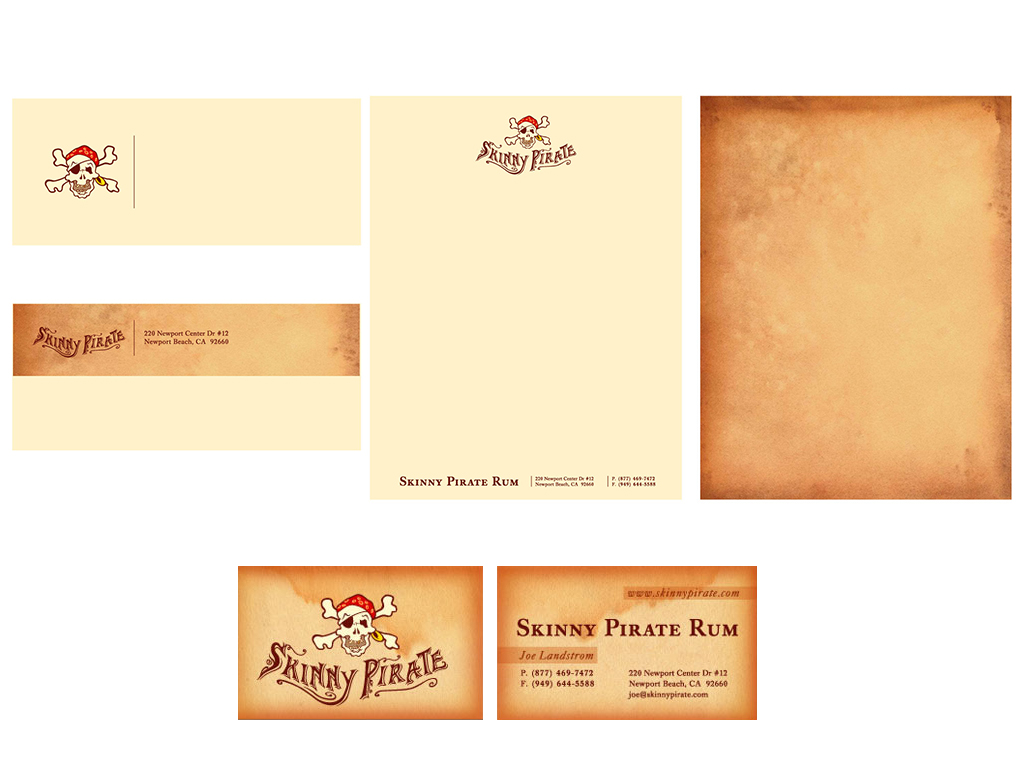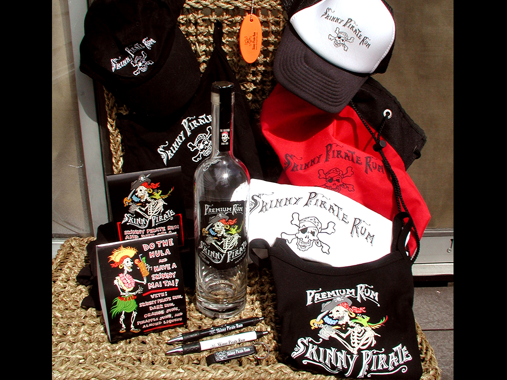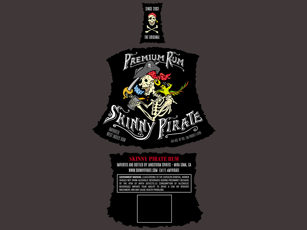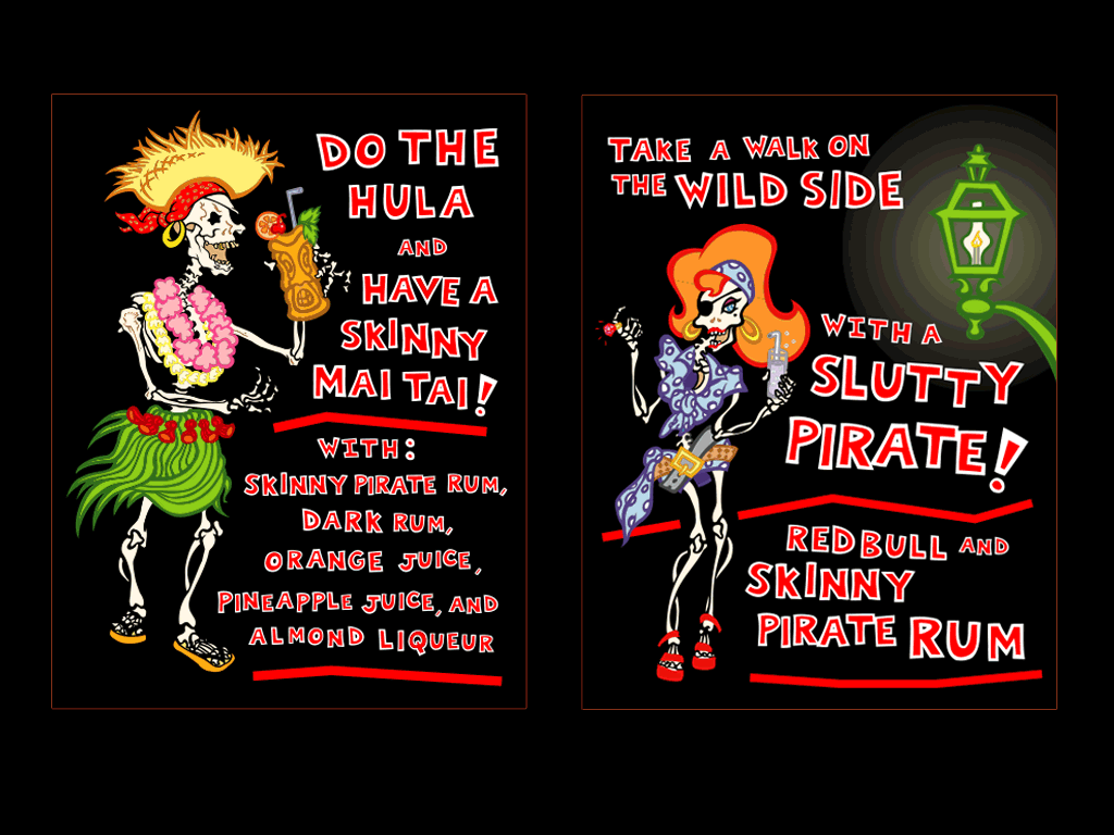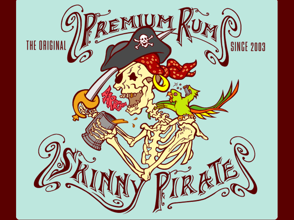 Skinny Pirate Rum hired me to do their logo and packaging for their Rum that was "Skinny" because it had less calories. It was a super fun job because I got to do an animated Flash website design fun characters and table tents with various drink combinations and I was allowed a lot of creative freedom.