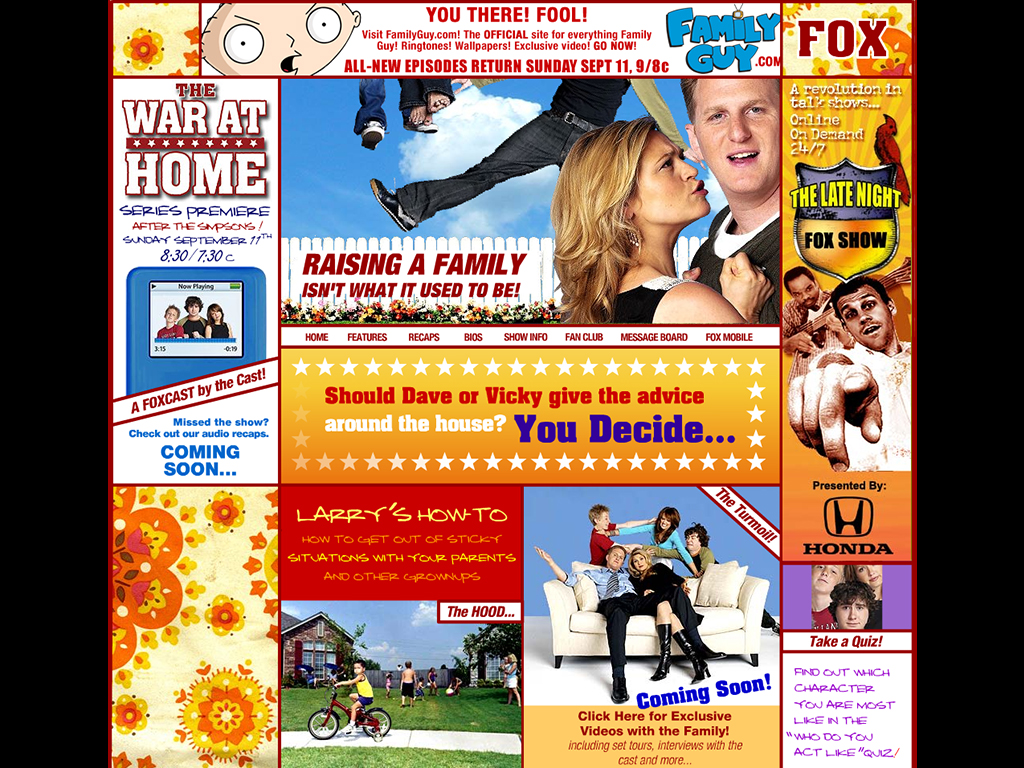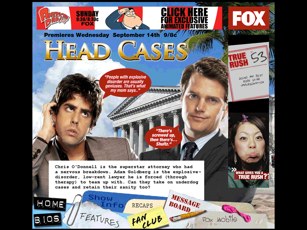 FOX was one of my first big studio jobs and I was hired on as a Flash animator. Sadly Flash became defunct so a lot of my animations can't be visible but most of the ads, websites and cartoons I did I kept stills from. My favorite job here was animating the Roger alien on American Dad where he rants on about his take on society.